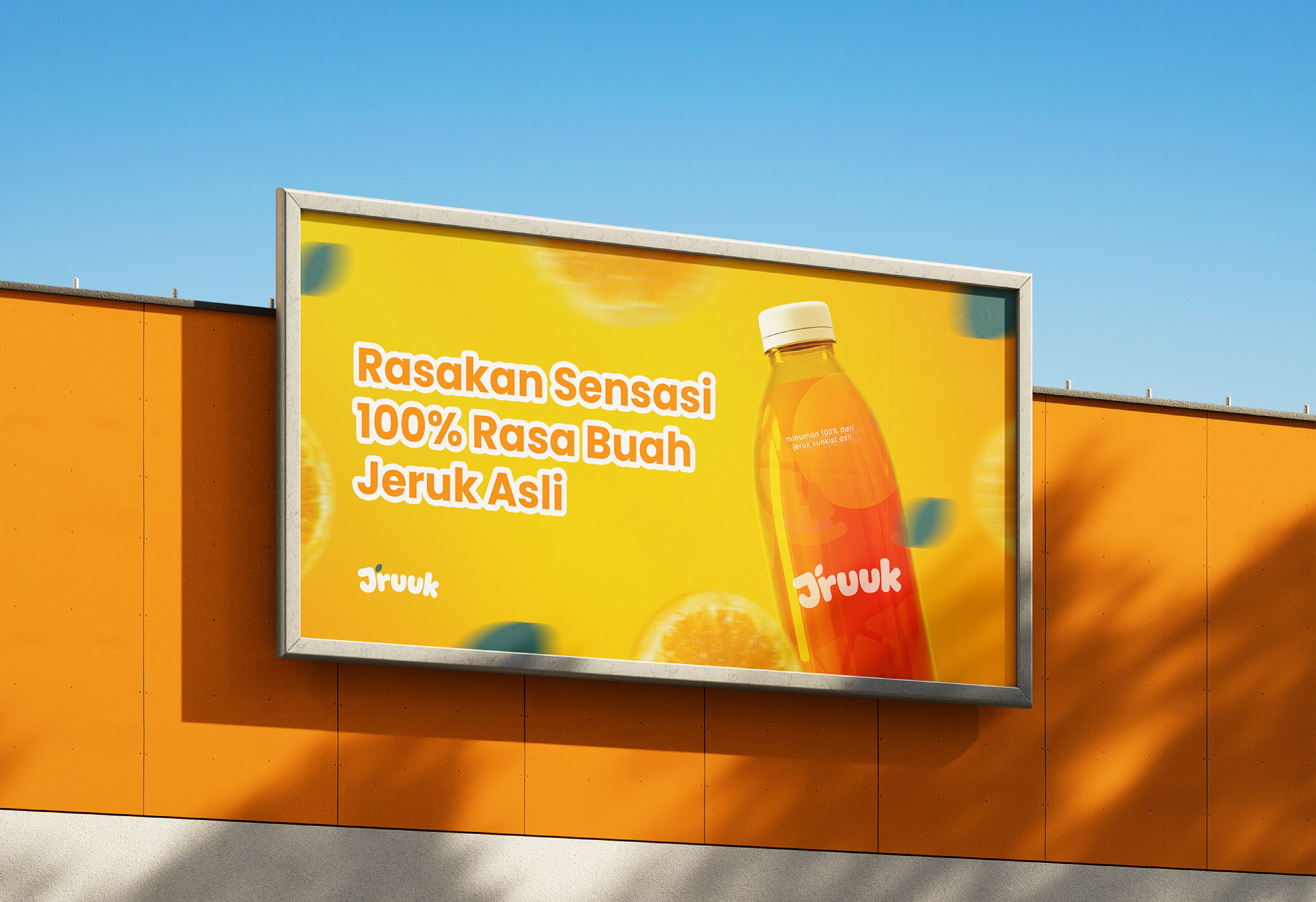 Central to Jruuk's visual identity are evocative illustrations of Sunkist oranges: juicy segments bursting with flavor, vibrant orange peels exuding freshness, and lush green leaves hinting at the fruit's natural origins. These illustrations are meticulously crafted to celebrate the premium quality and juicy appeal of Sunkist oranges, reinforcing Jruuk's commitment to delivering a wholesome and delightful citrus experience. Through its distinctive use of color and evocative imagery, Jruuk's visual identity not only captures the essence of Sunkist oranges but also invites customers to savor the refreshing taste and vibrant spirit of their citrus products.